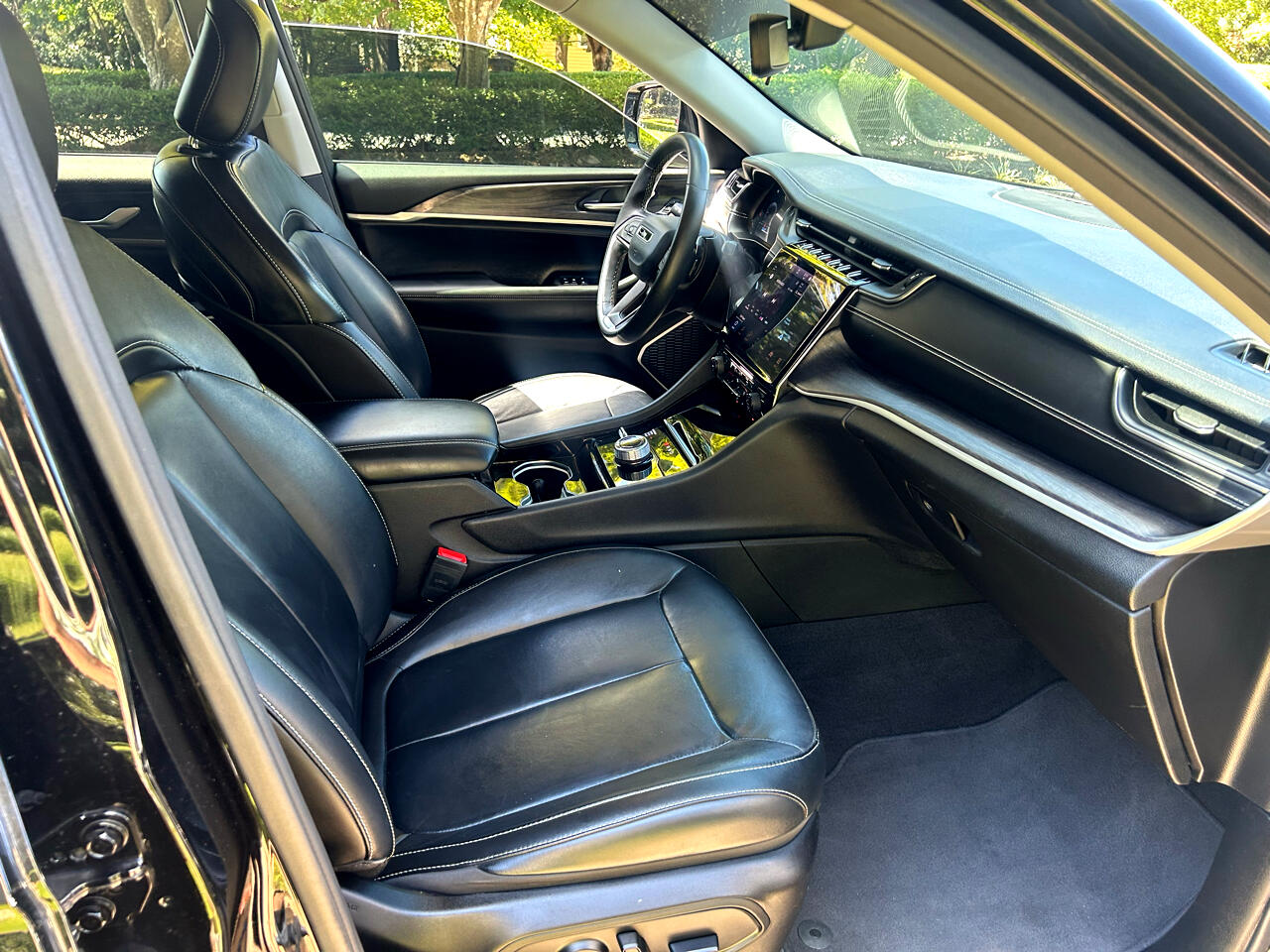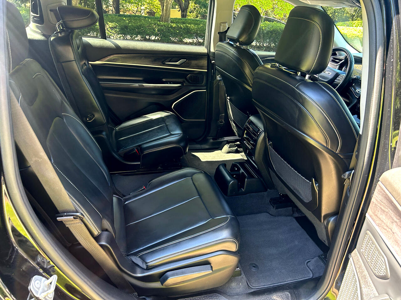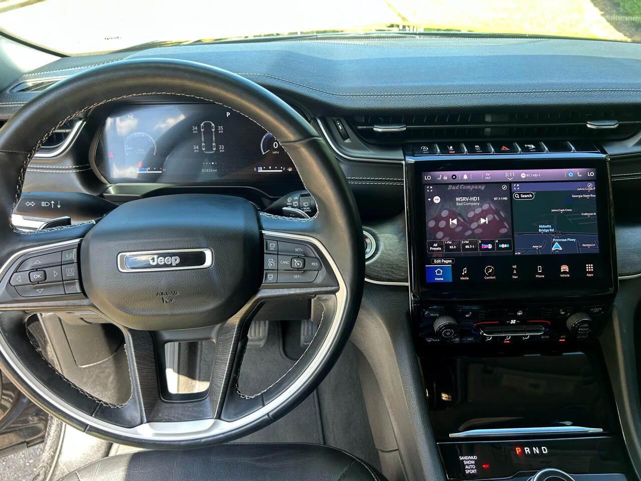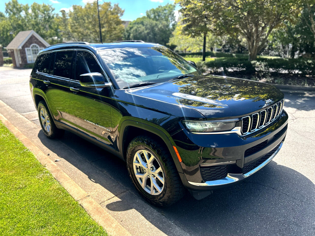 CLEAN CARFAX 2021 Jeep Grand Cherokee L 4X4 in excellent condition inside and out! Original MSRP attached, MSRP $50,825! This beautiful Jeep Grand Cherokee is fully loaded with 3rd row seating, electronic 4wd selector, navigation, accident avoidance systems, apple car play, blind spot warning, back up camera with parking sensors, rear Fam Cam, connected car integrated apps, heated front seats, heated steering wheel, split folding third row seating, auxiliary port, Bluetooth, dual zone climate control, customizable instrument display, driver assistance package, panoramic sunroof, voice activated commands, video monitor system, steering wheel controls, rear power seats, rear cross traffic alert, rear air conditioning, push button start, extra keys, power liftgate, premium Alpine sound system, adaptive cruise control, pedestrian/cyclist emergency braking, and so much more! For more information and to schedule a test drive please call us at 770-495-8400 or 770-294-5026. Thank you!